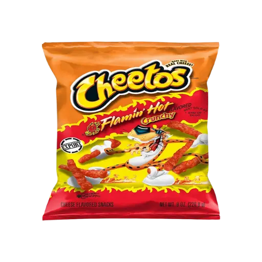 Enjoy Cheetos Flaming Hot Crunchy Chips for a fiery, crunchy, and delicious snack. Spice up your snack time and experience the iconic Cheetos heat in every bite.